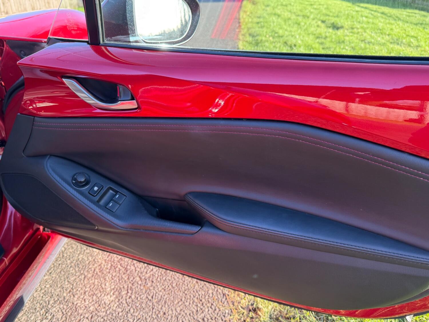 7in Colour Touch Screen Display, Aha App and Stitcher App Integration, Audio Transfer from Bluetooth Devices, Auxiliary - AUX - and Two USB Input, Integrated Bluetooth, Multimedia System, Satellite Navigation System, USB - iPod Connectivity, Analogue Speedometer, Cruise Control with Manual Speed Adjustment, Lane Departure Warning System, Multimedia Commander, Rear Parking Sensors, Trip Computer, Tyre Pressure Monitoring System, 17in Alloy Wheels - Bright Finish, Body Coloured Door Mirrors, Dual Exhaust System, Electric Windows - One Touch Auto Down, Electrically Adjustable-Heated Door Mirrors, Emergency Tyre Repair Kit, Fashion Bar Cladding, Fuel Filler Lid - Body Colour, Hardtop - Power Retractable, Windblocker, Dusk Sensing Automatic Headlights, Headlights - Adaptive Front Lighting System, Headlights - Coming-Leaving Home, Headlights - LED with Auto Headlight Levelling, LED Daytime Running Lights, Rear Brake Light - High Mounted, Air Conditioning - Climate Control, Air Conditioning Dials - Chrome, Air Vent Surrounds - Chrome, Auto Dimming Rear View Mirror, Chrome Meter Rings, Coinbox, Cupholder - Front x2, Engine Start-Stop Button, Gear Knob - Leather with Chrome Surround, Handbrake - Leather Wrapped, Heated Seats, Inner Door Handles - Chrome, Interior Upper Door Trim - Body Coloured, Rain-Sensing Front Wipers, Seats - Drivers Manual Slide-Recline and Tilt Adjustment, Seats - Front Passenger Manual Slide and Recline Adjustment, Side Door Trim - Black with Red Stitching, Steering Wheel - Leather, Steering Wheel - Mounted Audio and Bluetooth Controls, Steering Wheel - Tilt Adjustment, Storage - Rear Centre Box with Lockable Lid, Sunvisors - Drivers and Passengers with Covered Vanity Mirror-Ticket Holder, Adjustable Speed Limiter, Double Pinion Electric Power Assisted Steering - DP-EPAS, Automatic Passenger Airbag Deactivation System, DHS - Deployable Hood System, Driver and Passenger Front Airbags, Dynamic Stability Control - DSC - with Traction Control System - TCS, Four-Wheel Anti-Lock Braking System - 4W-ABS with Electronic Brake-Force Distribution - EBD, Hill Hold Assist, ISOFIX Child Seat Anchorage - Passenger Seat, Remote Central Locking with Deadlocking and Remote Boot Release, SKYACTIV-Body Engineered Triple H Body Structure to Help Protect Occupants from Impact Forces, SRS - Supplementary Restraint System, Seatbelts - 3 Point - ELR - 2x with Pre-Tensioners, Seatbelts - Reminder Screen with Audible Warning, Side Airbags, Smart Keyless Entry, Thatcham Category 1 Alarm and Immobiliser